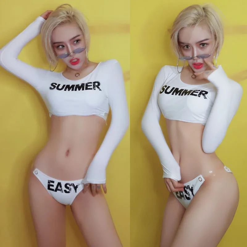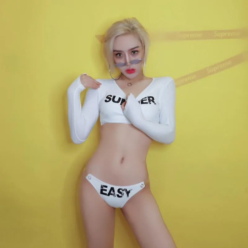 Best Promo Jazz Dance Costumes Nightclub Singer Dj Ds Female Group Sexy Performance White Letter Set Rave Outf